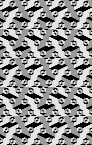 Each disks appear to rotate clockwise on display or counterclockwise in printed images under dark illumination.