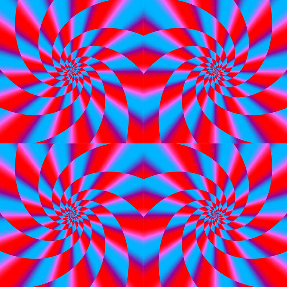 "Rotating snakes: Red and green, mixed with cyan: contrast reversed"