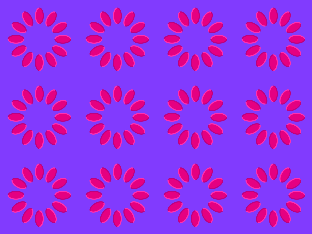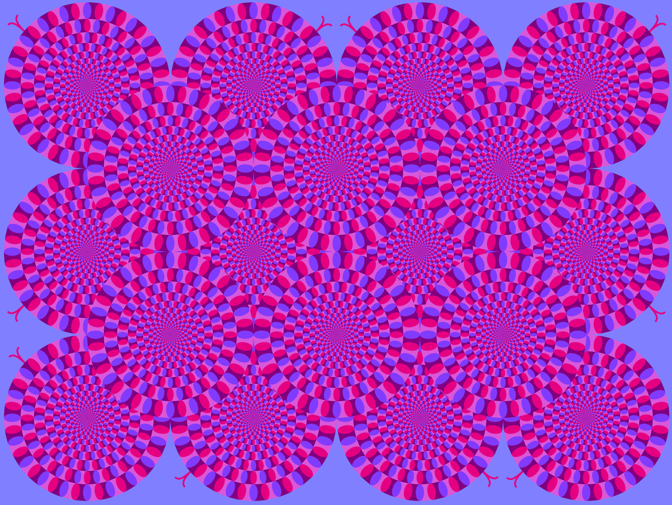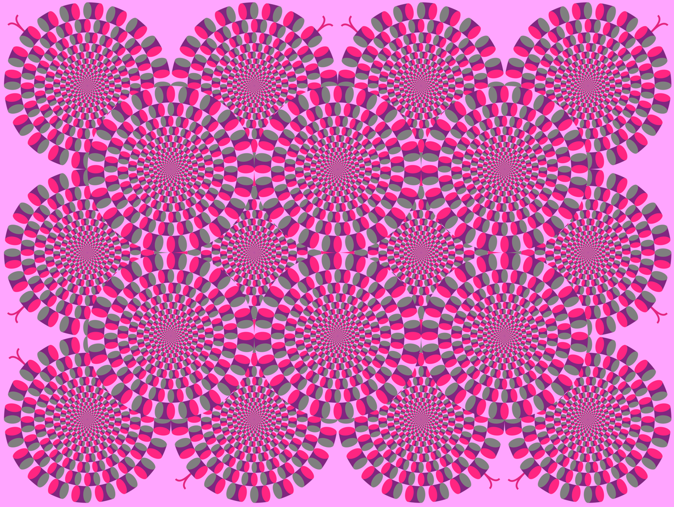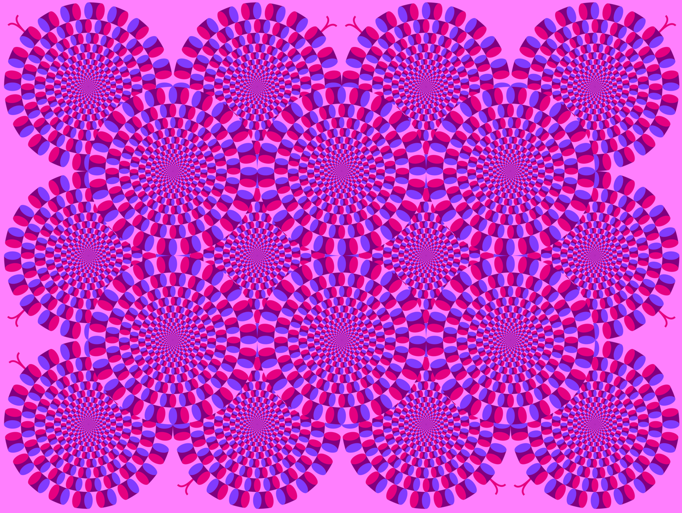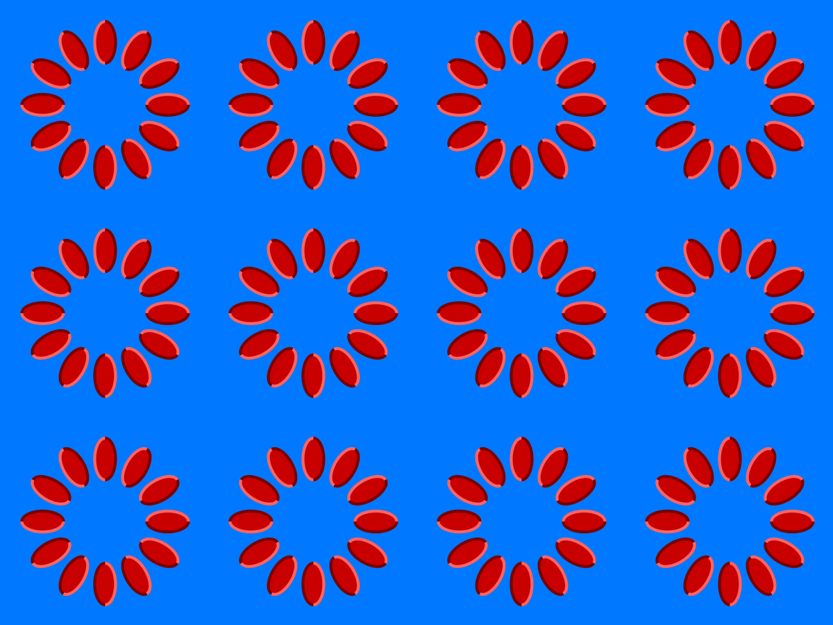 On a bright display, each ring appears to rotate clockwise whereas counterclockwise in a print in a dark illumination.