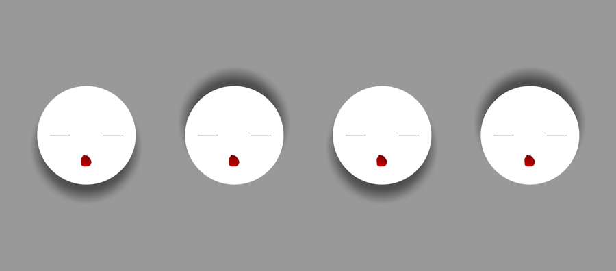 The leftmost and third faces appear to see upward a little while the other two downward a little, though the four faces are identical