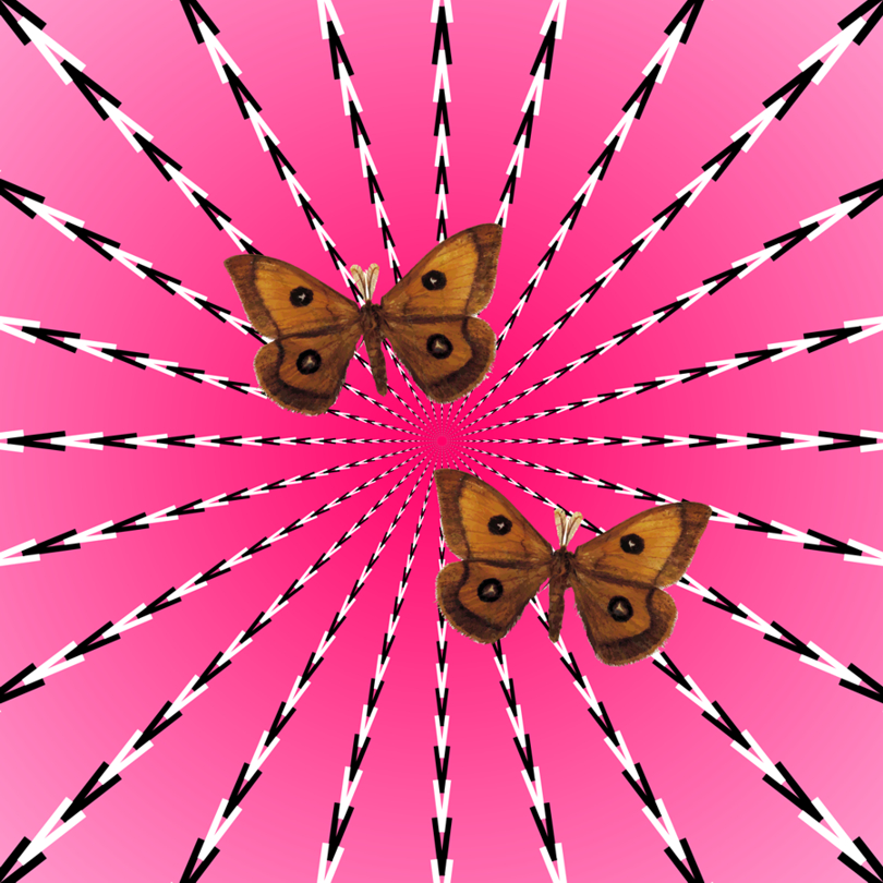 "Rotating snakes: Red and green, mixed with magenta: contrast reversed"