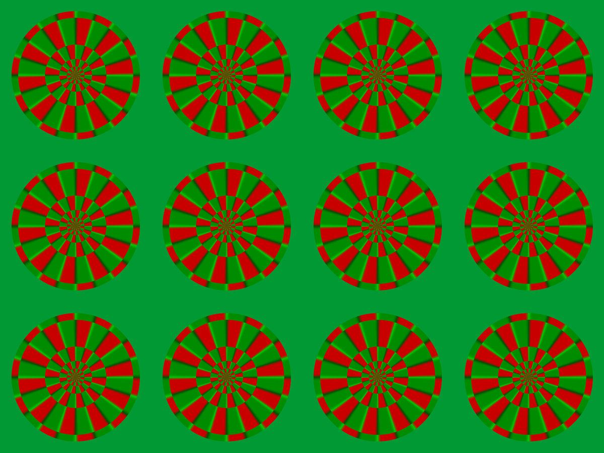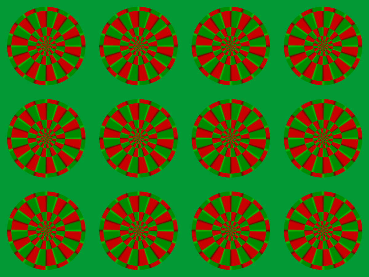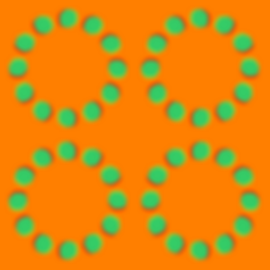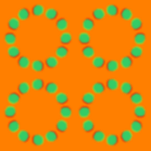 Each disk appears to rotate clockwise. The direction of illusory motion is reversed in a dark condition.