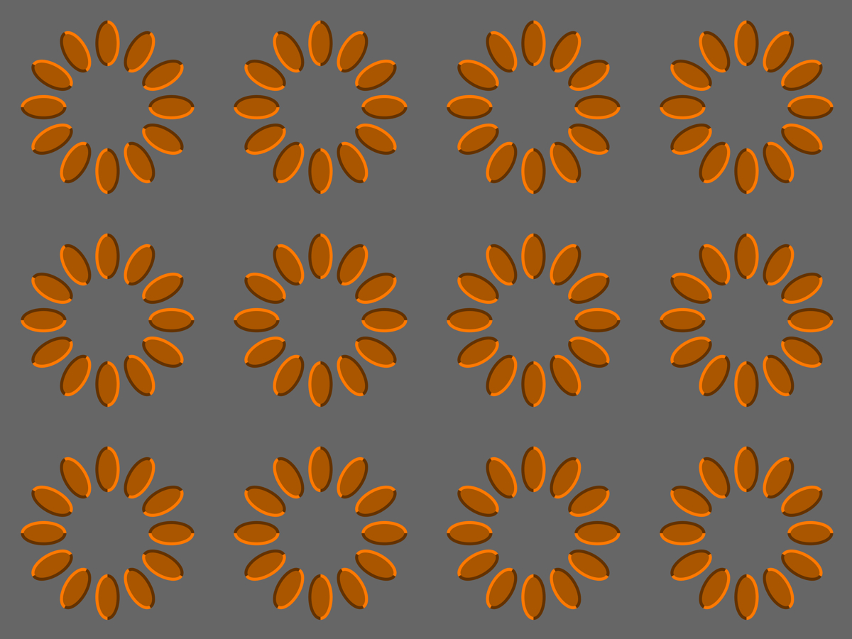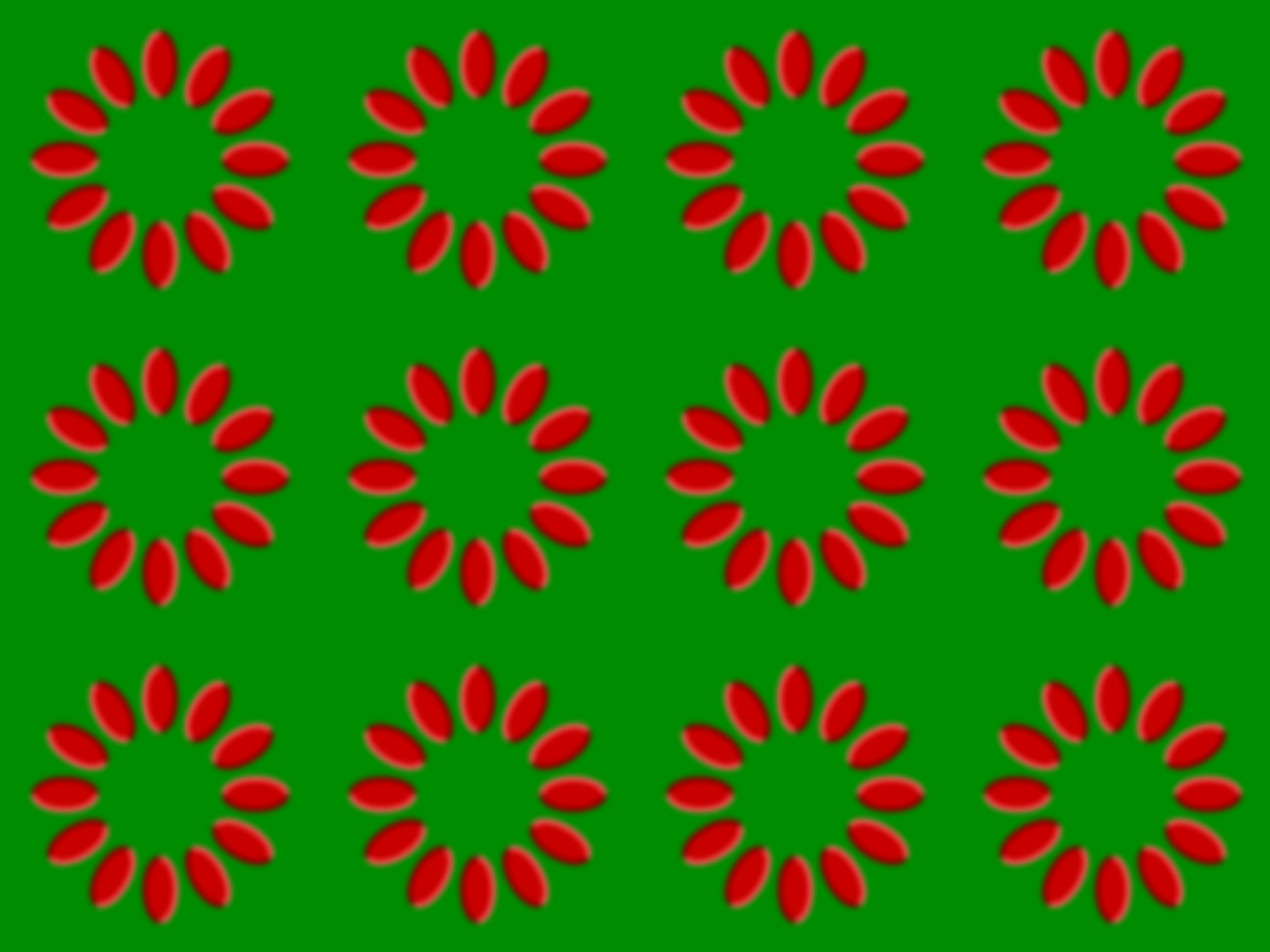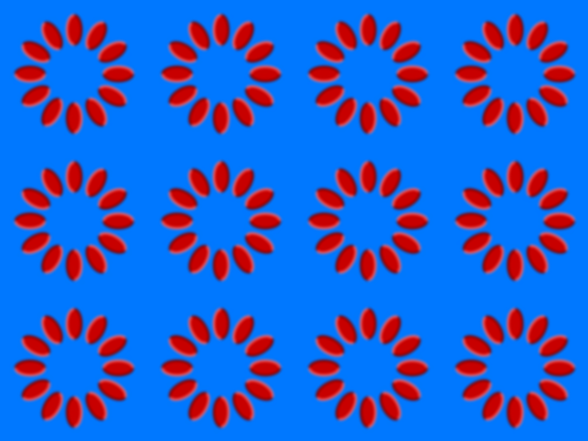 The image appears to rotate clockwise. The direction of illusory motion is reversed in a dark condition.