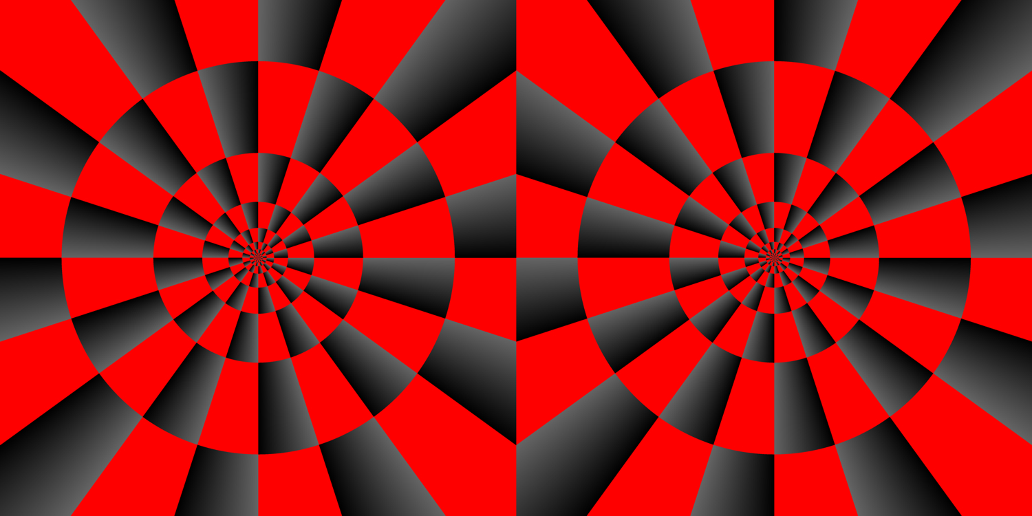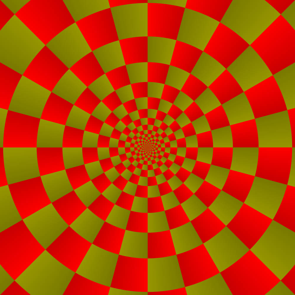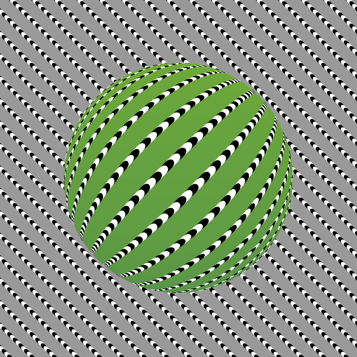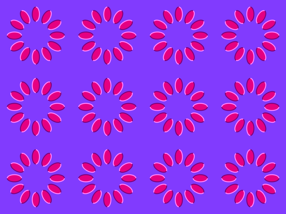 The image appears to rotate clockwise. The direction of illusory motion is reversed in a dark condition.