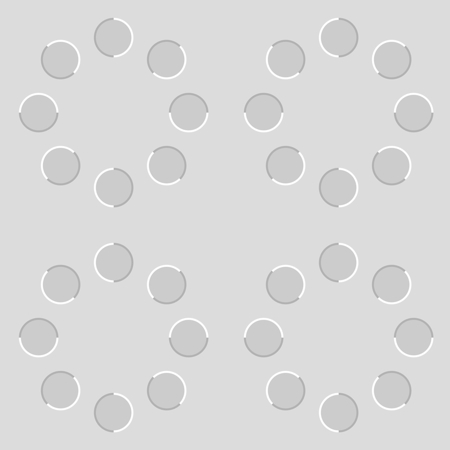 The upper-left and lower-right rings appear to rotate counterclockwise while the upper-right and lower-left ones clockwise.