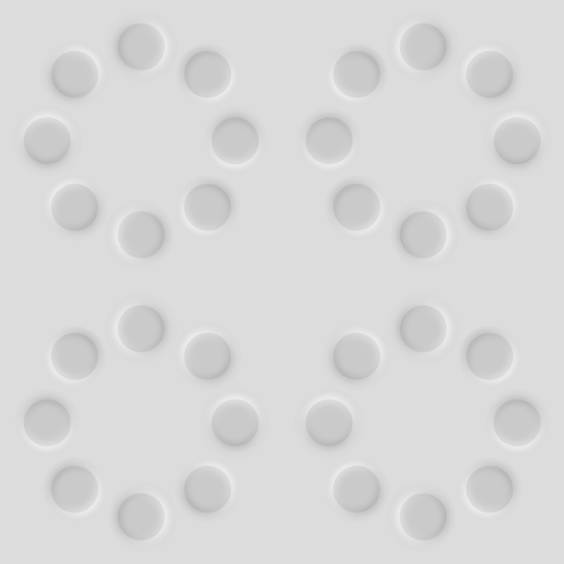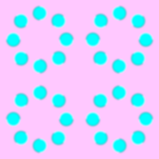 "Rotating rings of light-blue bulging beads"