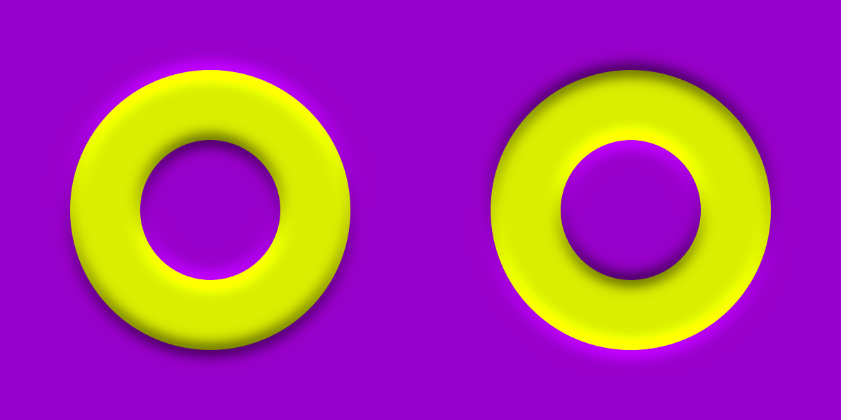 The left ring appears to move downward whereas the right one upward. The left ring tends to appear to be in front whereas the right one behind. The left ring is the inverted image of the right one.