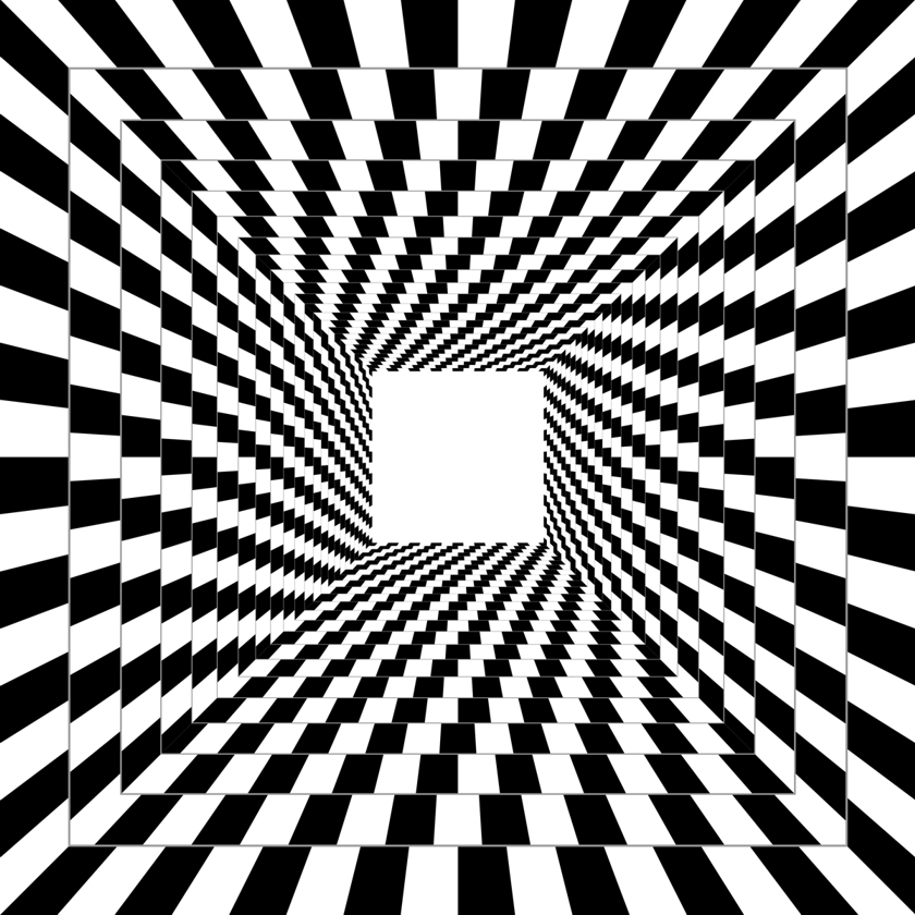 Vertically and horizontally alinged gray squares appear to tilt cloclwise.