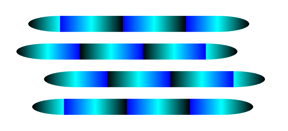 The upper two rows appear to move rightward while the lower two ones appear to move leftward.