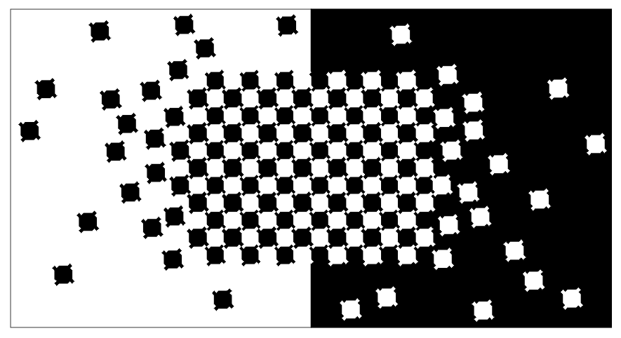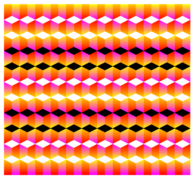 Some rows of white diamonds appear to glare. Moreover, the image appears to wave laterally.