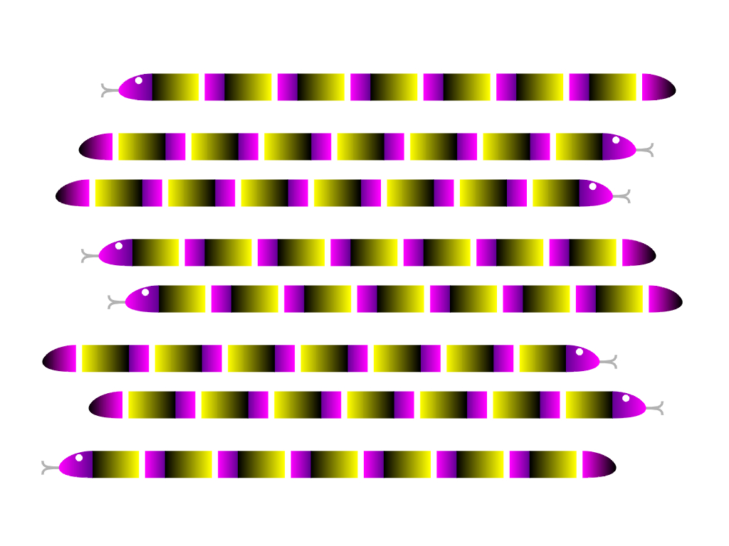 The uppermost and lowermost worms appear to move rightward while the rest appear to slide leftward. It takes time to start moving.