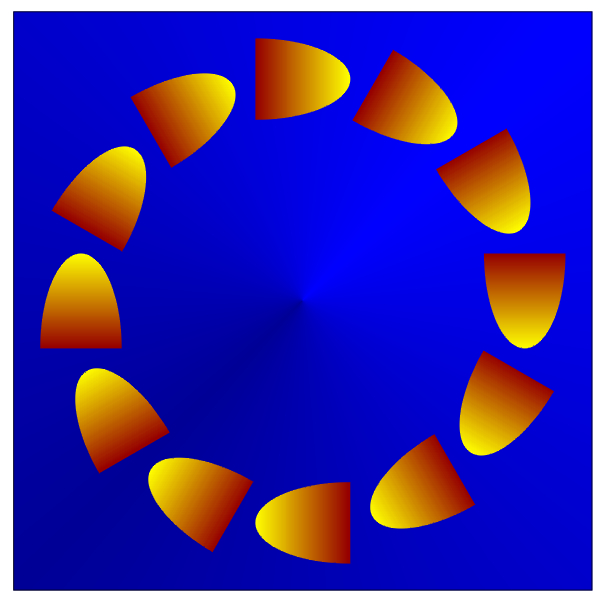 When we see this image without effort, the ring may appear to rotate counterclockwise. On the other hand, when we see this image keeping blinking, the ring appears to rotate clockwise.