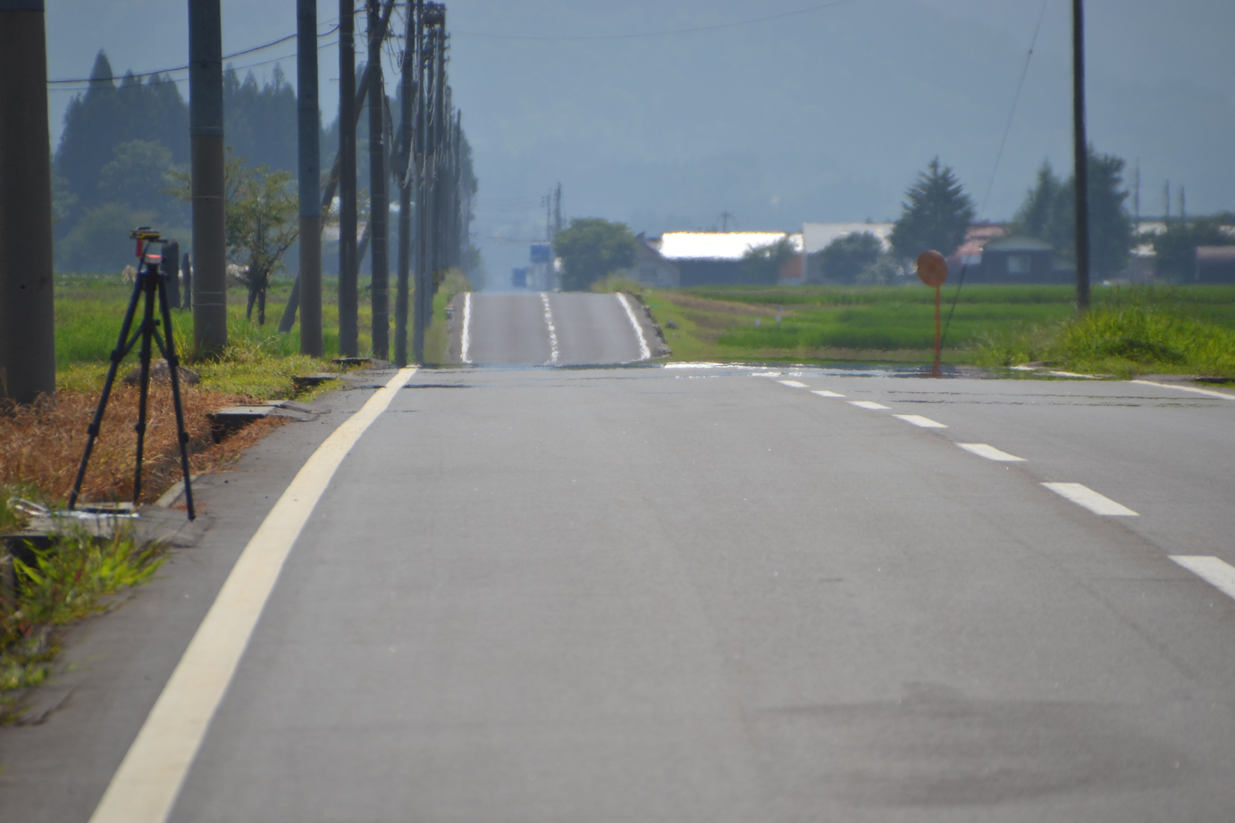 蜃気楼が見えているところは上り坂なのである(1.0度、1.7%)が、下り坂に見える。クレストの手前およびサグの奥はともに 2.8度、4.9% の上り坂であった。