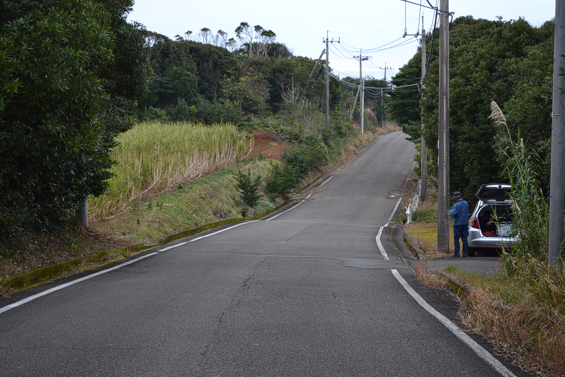 種子島の「中種子町納官(なかたねまち のうかん)深久保の錯視の坂」の実地調査