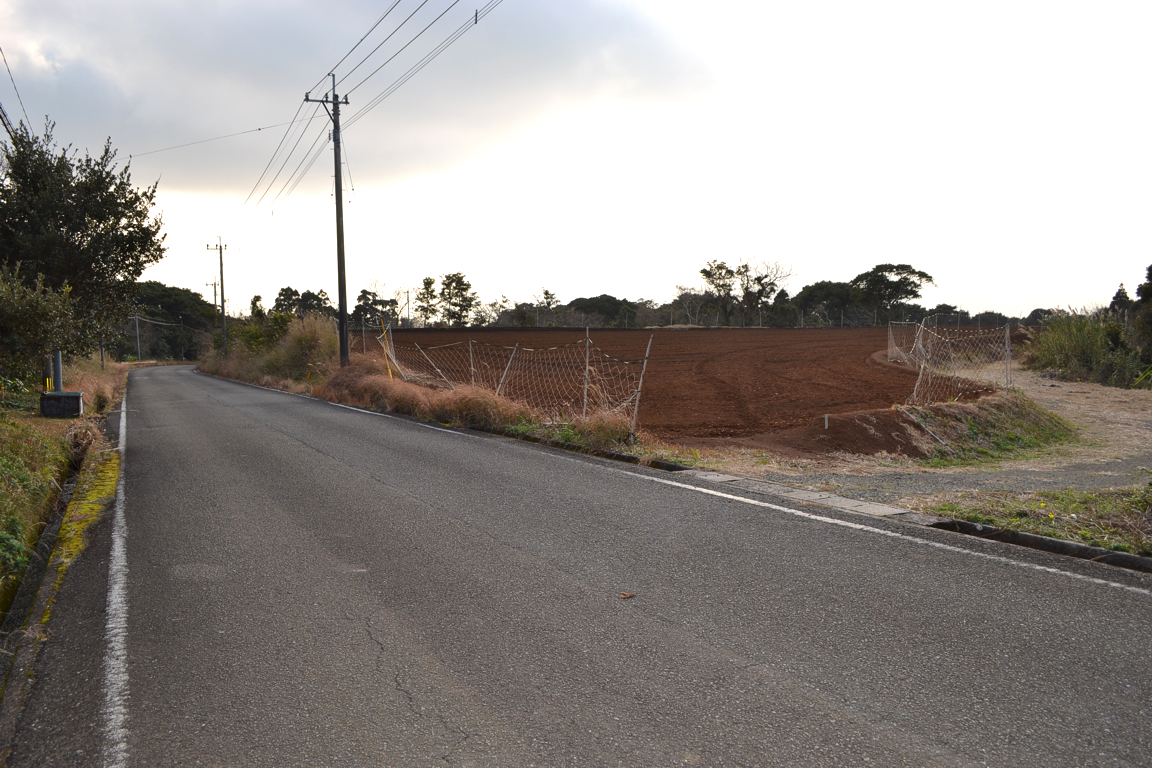 道路は奥に向かって急勾配の下り坂だからなのか、この畑は奥が手前より高く見えるが、物理的には水平なのであろう。