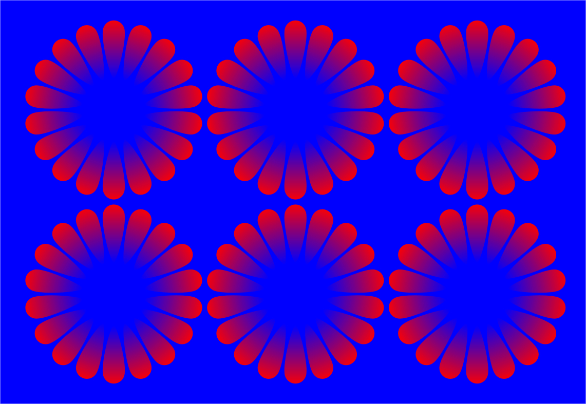 For more than half people, the circumference of each ring appears to be in front. In addition, the 'mist' in the ring center appears to move when observers move their eyes (saccade).