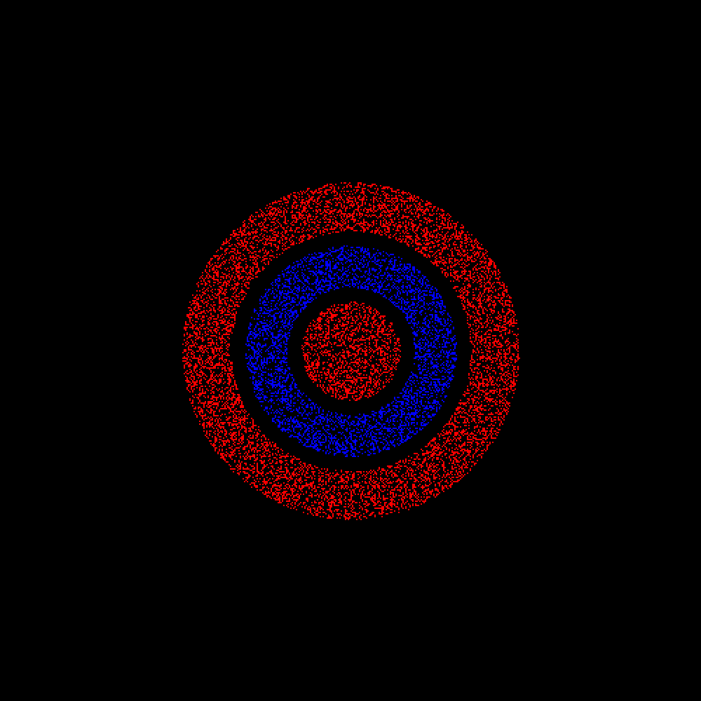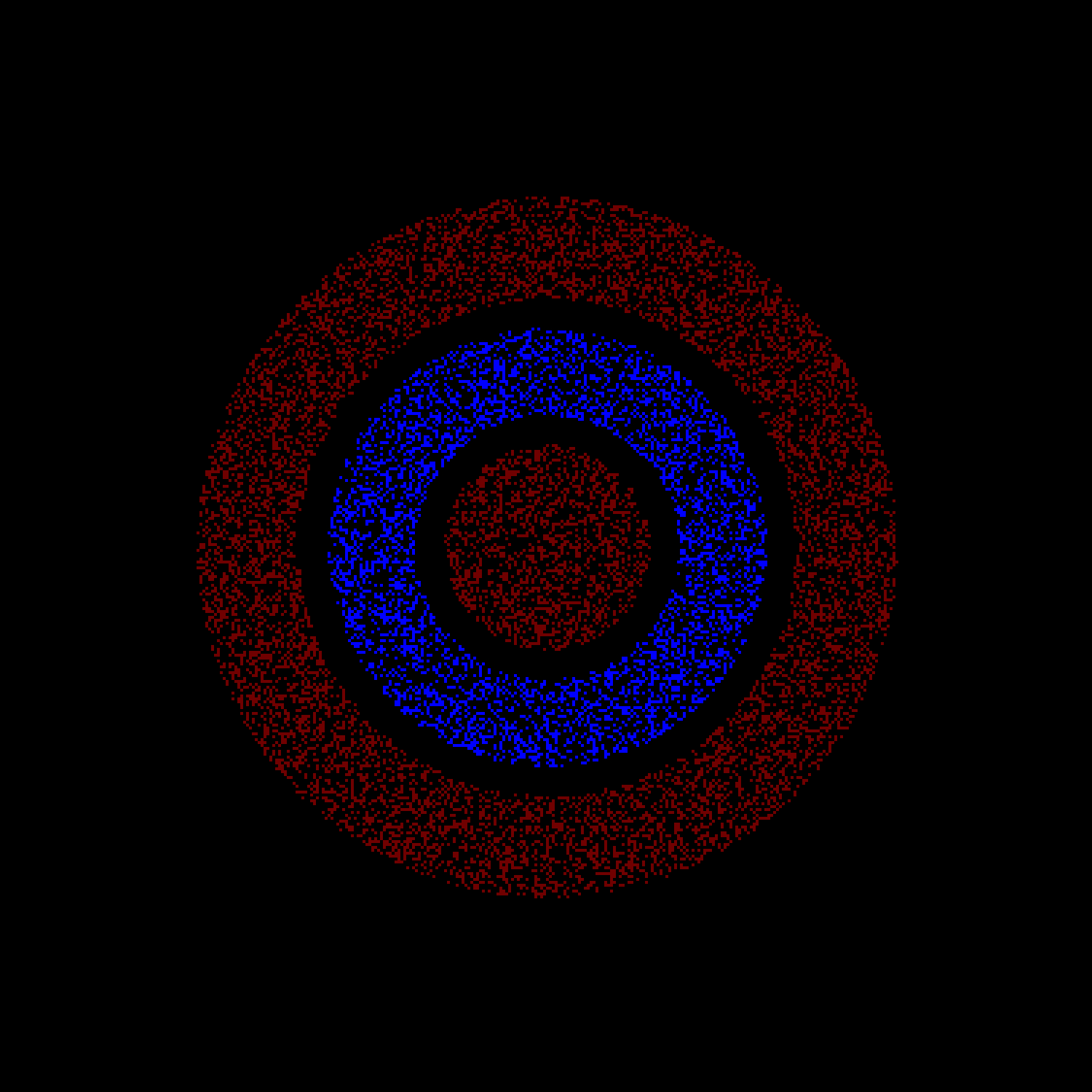 For many people, the effect is larger when they see the figures with a distance of more than 1 meter. In my knowledge, more than half observers see red in front of blue when the background is black, while about 20% see blue in front of red.