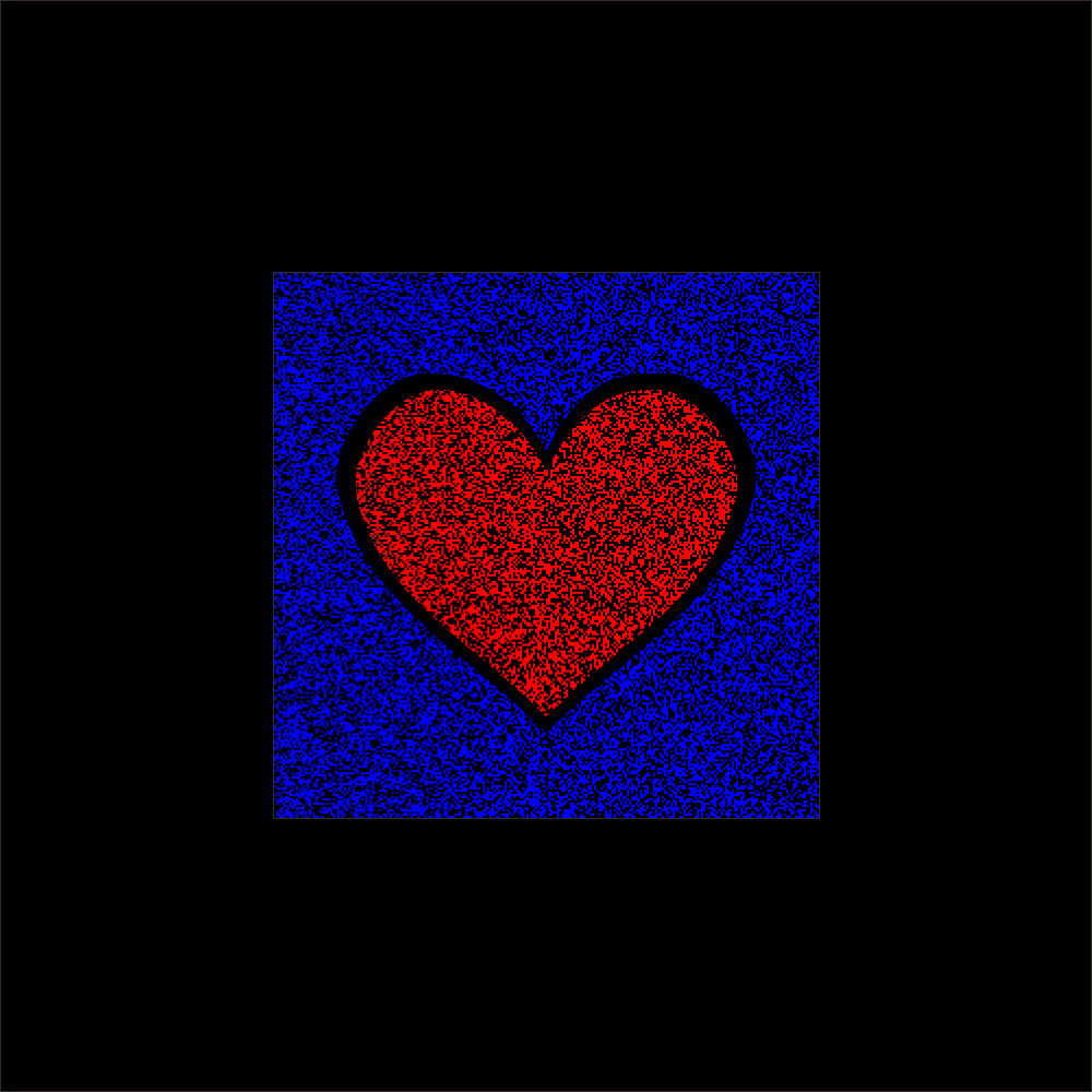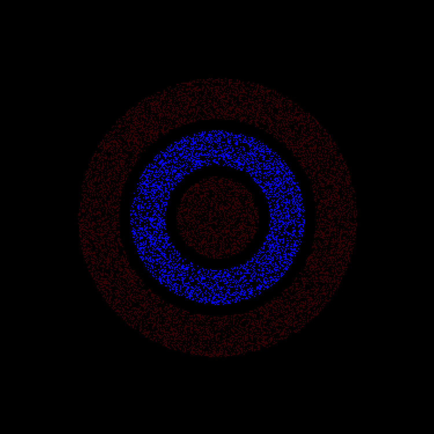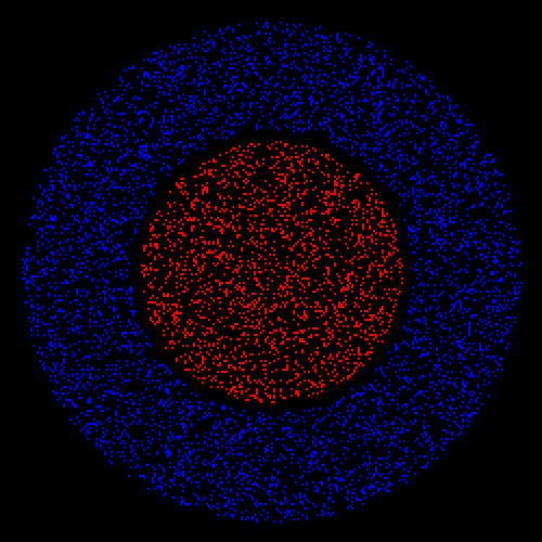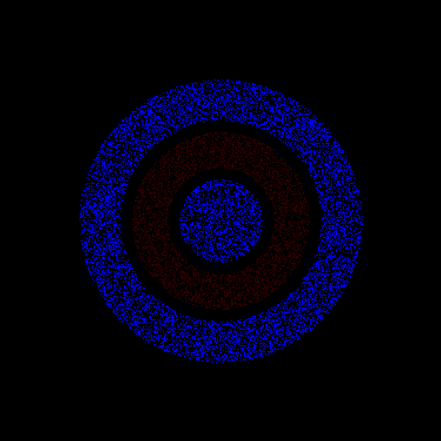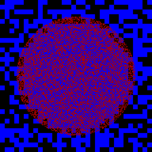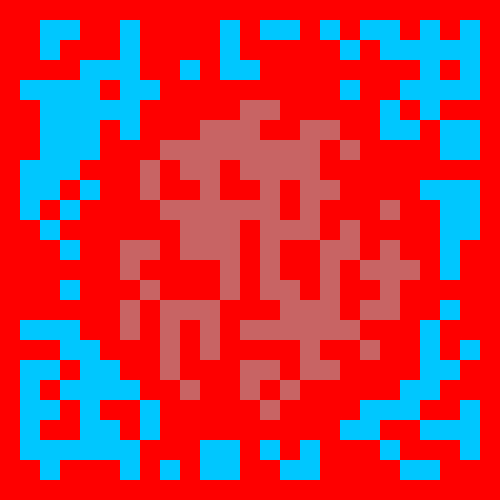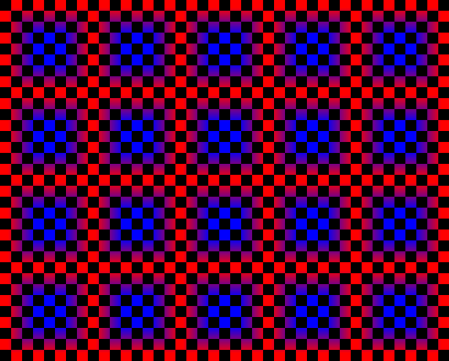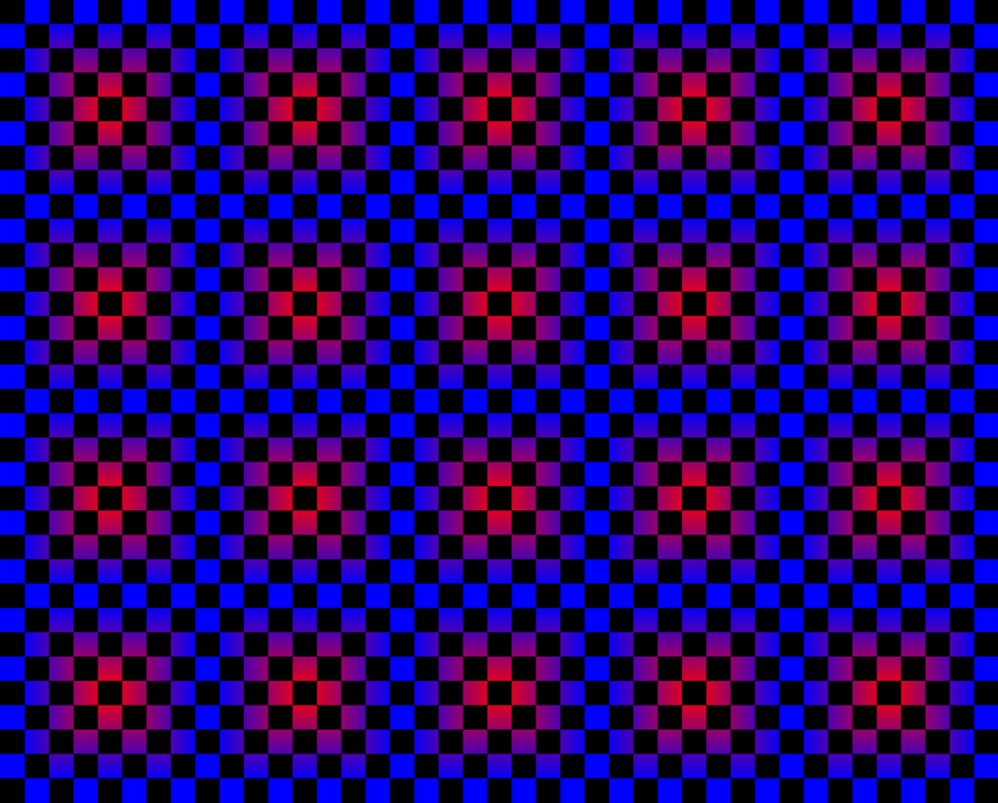 There appear to be blue holes. The effect is strong when the image is seen from apart. Moreover, dots of the circumference of each hole appears to be purple-red, though they are the same red as the surrounding dots.