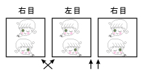 Columns appear to be alternately placed in one of the two different depths, though the columns (rectangles) have no disparity.