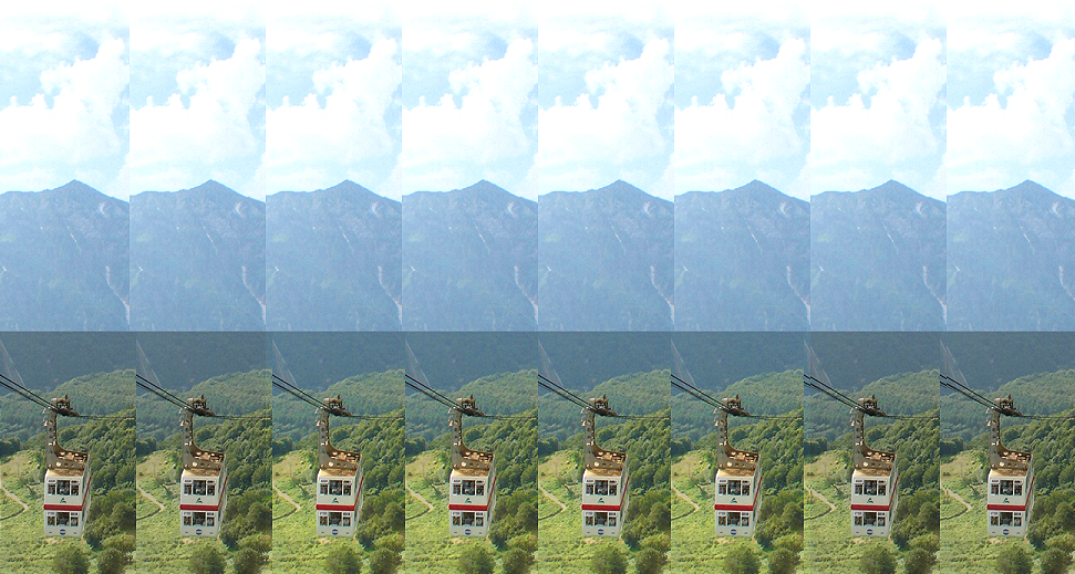 Uncross-fusers see three ropeways in front of the background while cross-fusers see them behind.