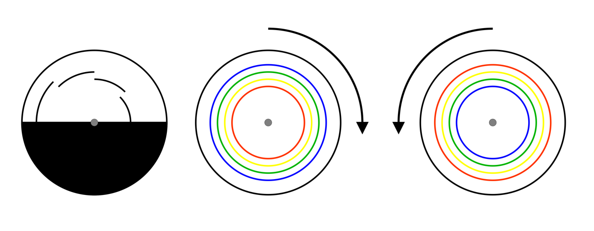 Achromatic arcs appear to be colored during rotation.