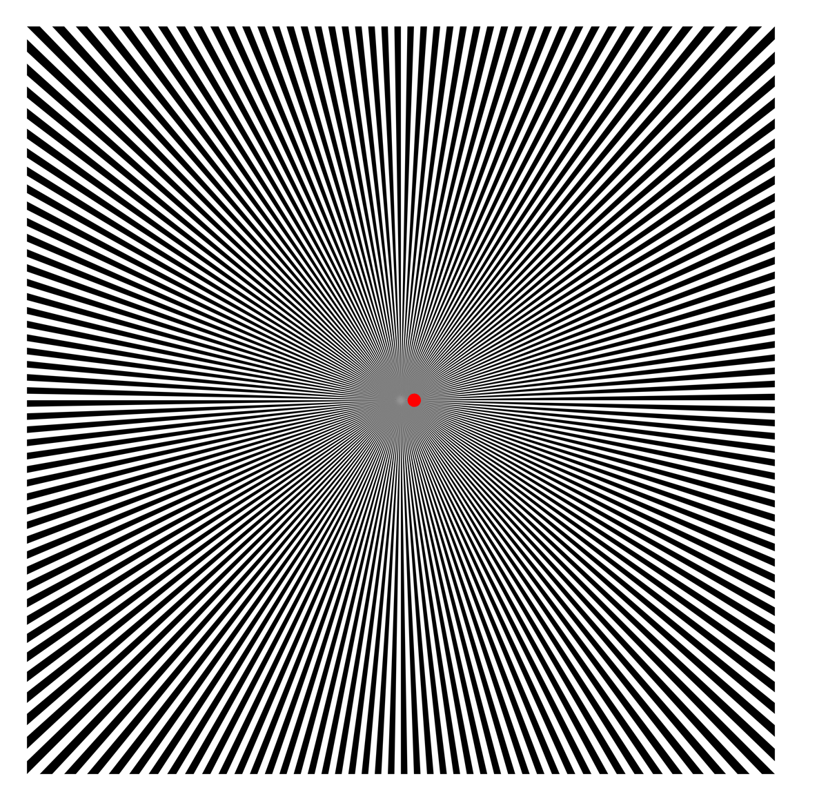 Illusory radial (not straight) stripes of rainbow-like subjective color are observed.