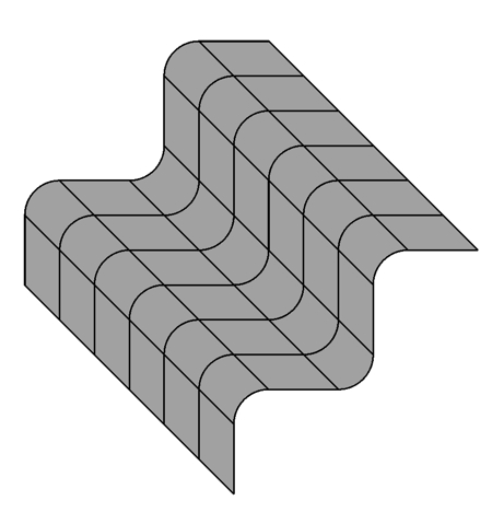Two states of wave appearance alternate. One is that the center appears to be convex toward observers while the other is that it appears to be concave. In addition, the six oblique lines are indeed parallel to each other, they appear to tilt alternately.
