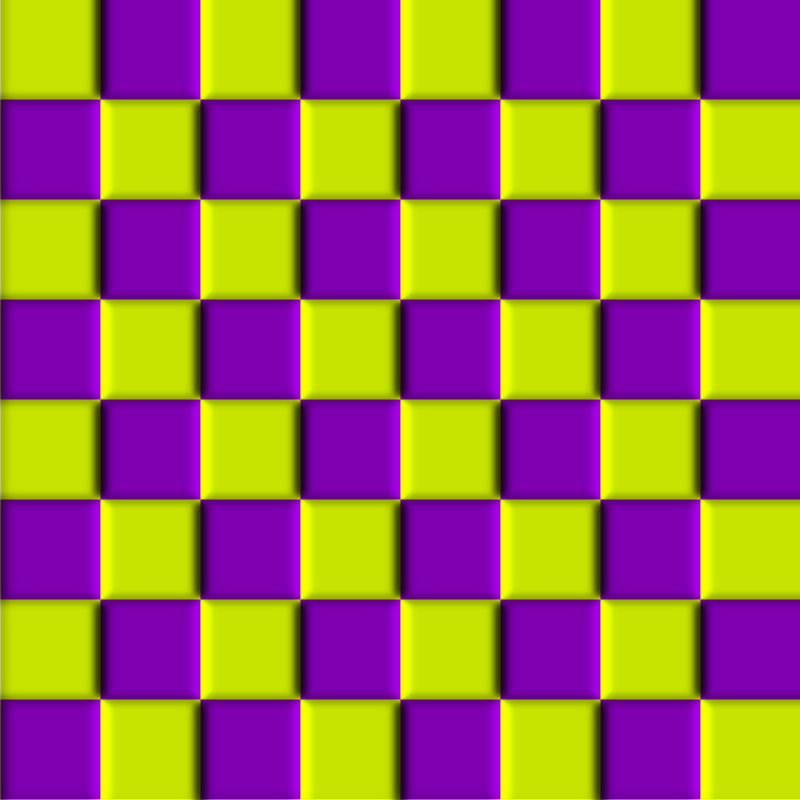 Purple squares appear to be convex toward observers for one time, while yellowish-green squares do so for the other time.