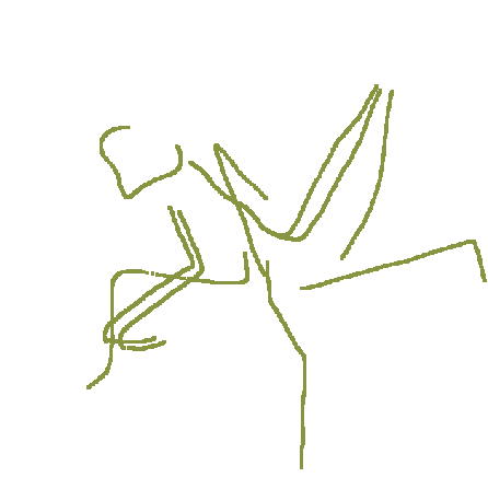 The praying mantis appears to rotate clockwise or counterclockwise as seen from the side.