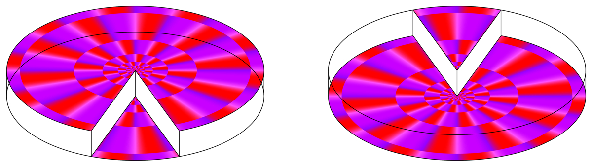 The idea of the famous reversible image using the shape of a piece of cake is applied.