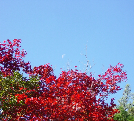 The autumn color and the half moon (2003/11/18) in the Tenryu-ji temple