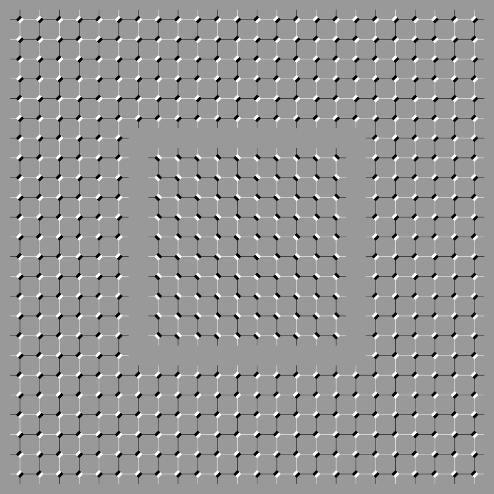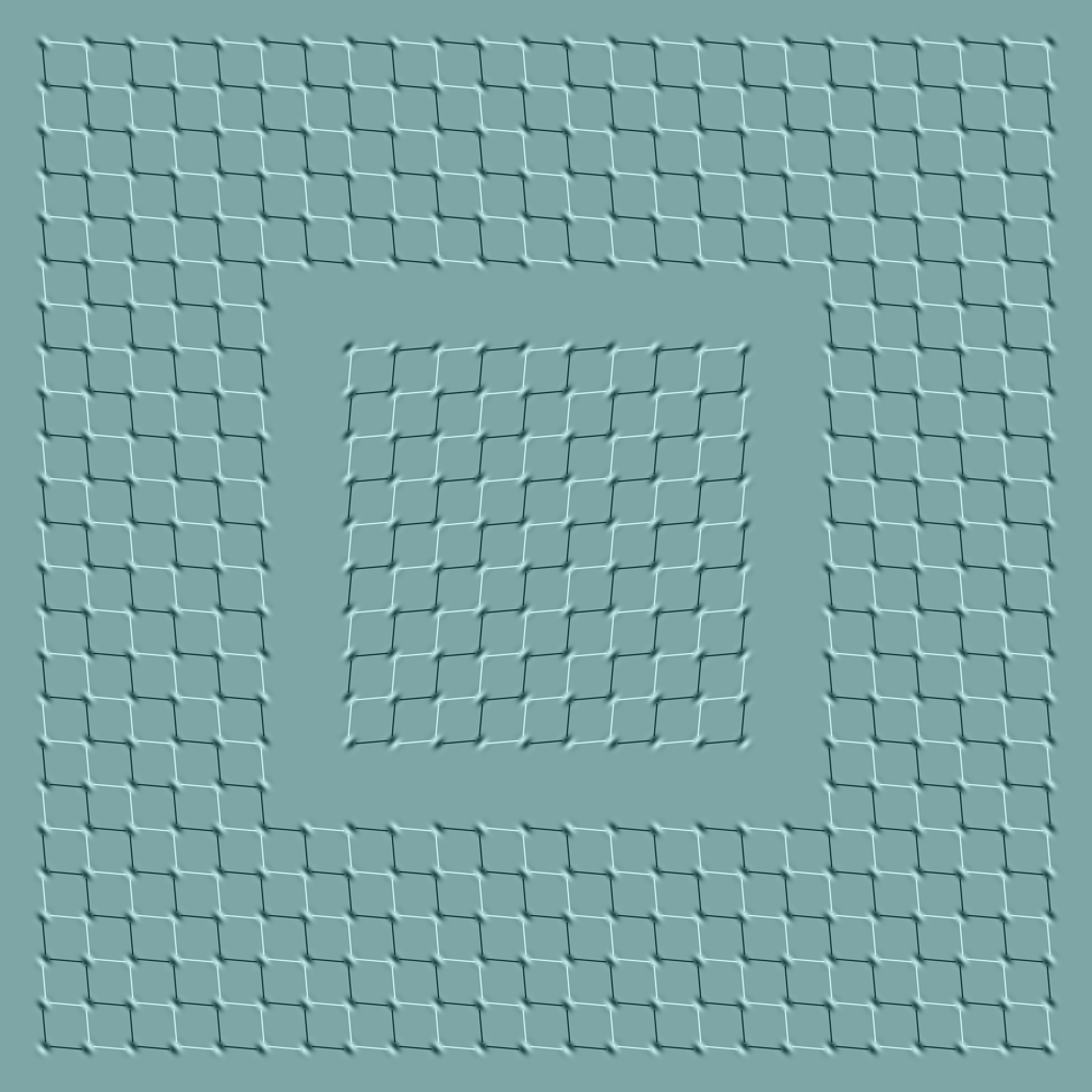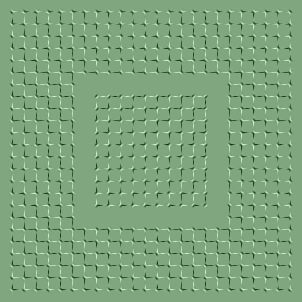 内側の正方形領域が動いて見える。内側の正方形領域が菱形に(垂直は右に、水平は左に傾いて)見える。