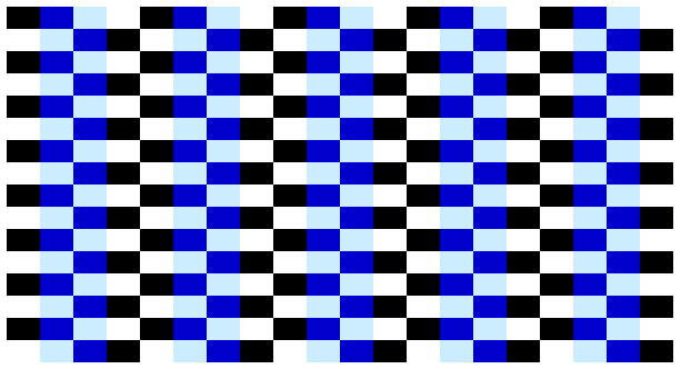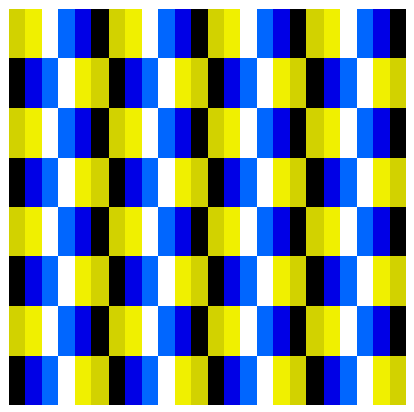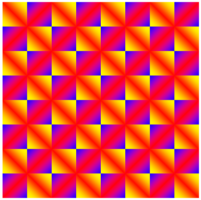 It appears that red "clouds" are floating in front of a blue-and-yellow checkerboard.