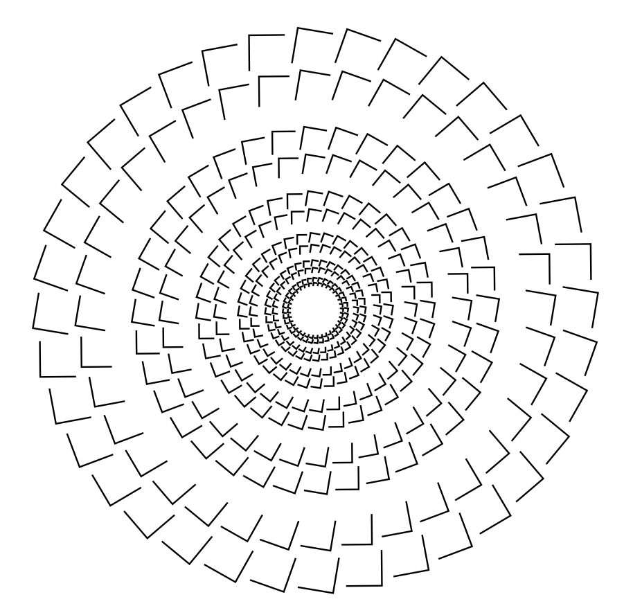 Concentric rings made up of squares appear to intertwine interwining.1)
