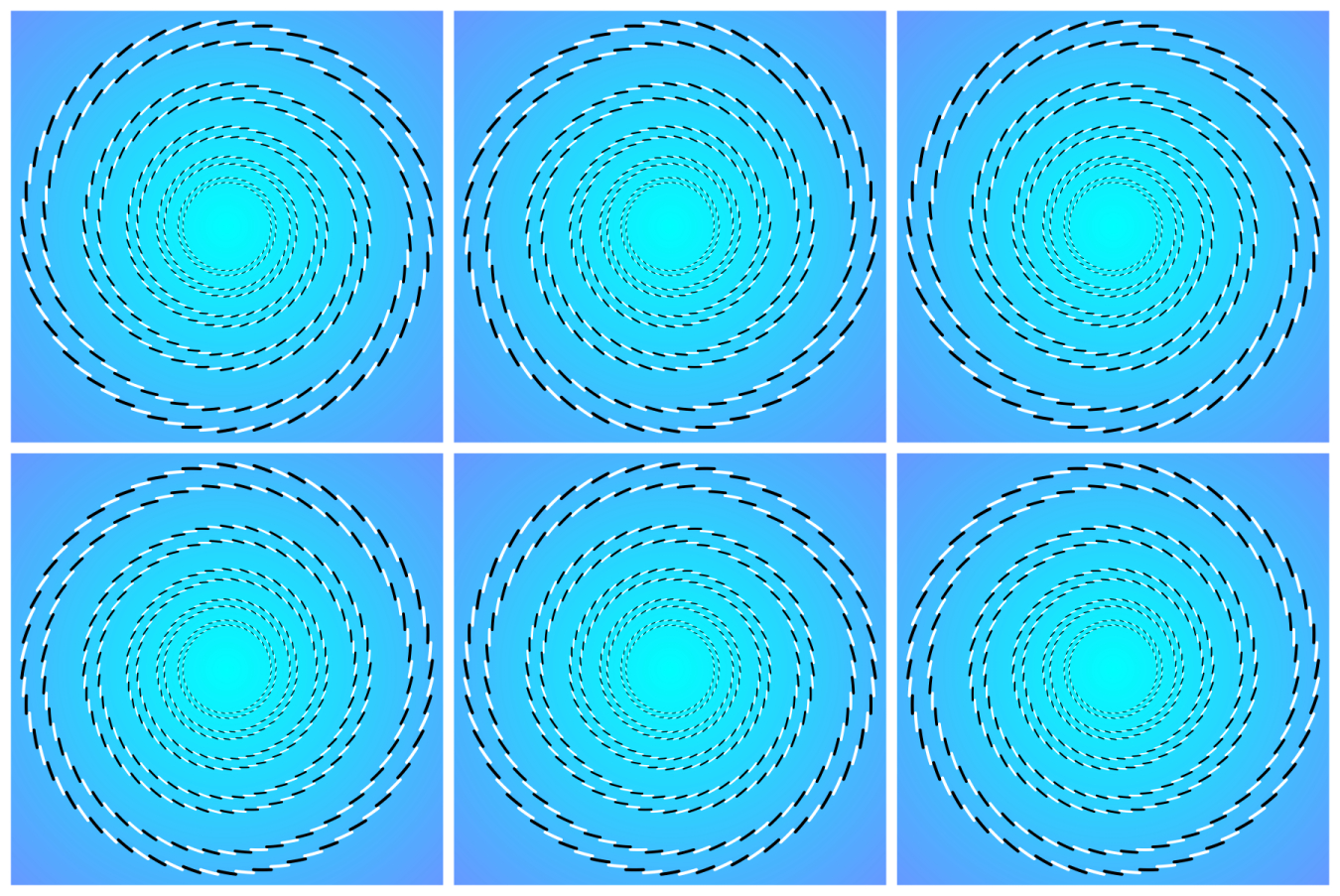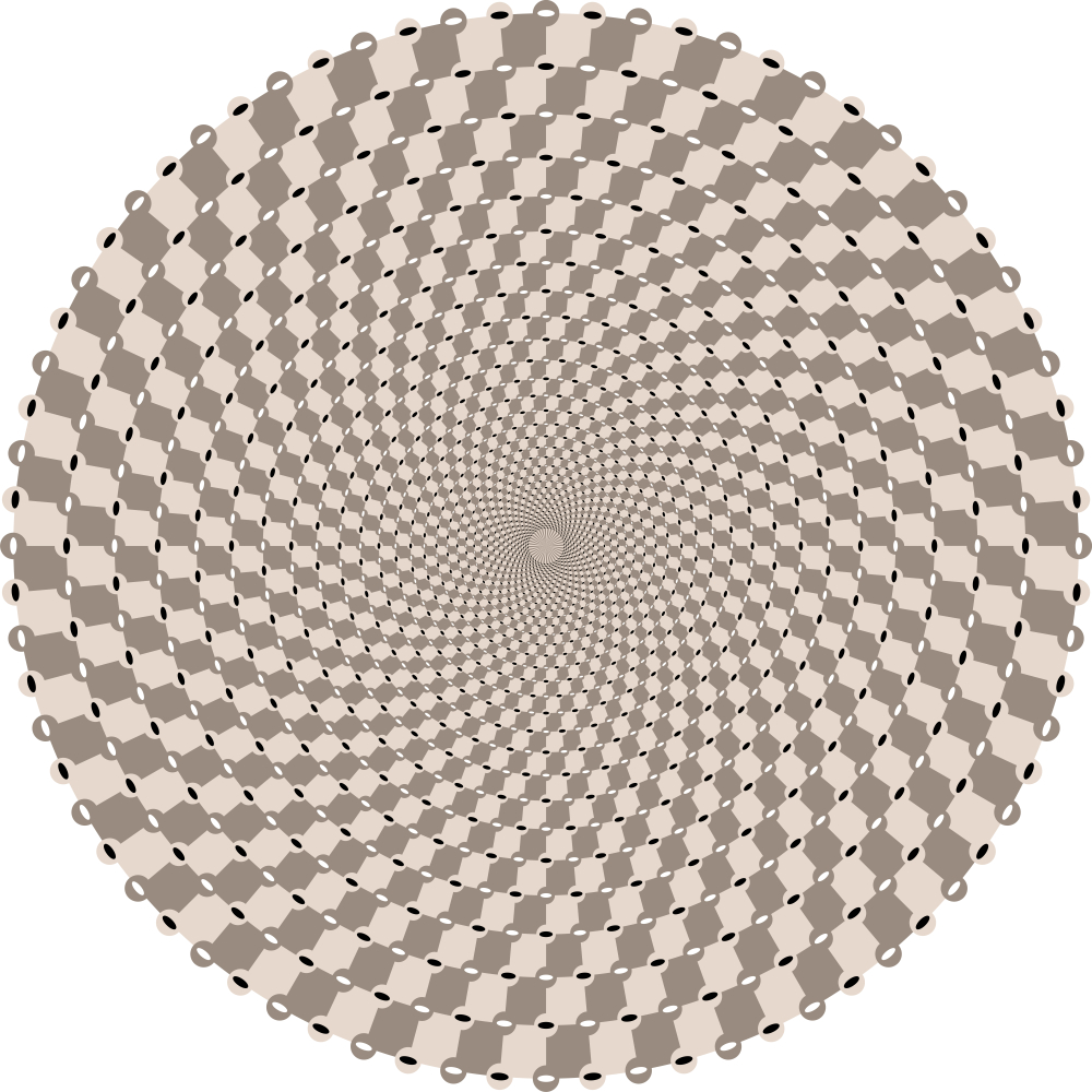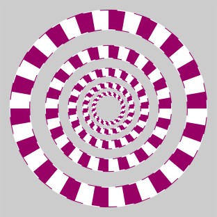 Concentric circles appear to be spirals (going to the center by rotating clockwise). Moreover, the inner part appears to rotate clockwise (counterclockwise) when observers approach (move away from) the image keeping their eyes fixed at the center.
