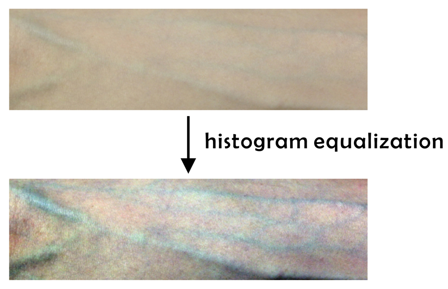 Enhancement of the visibility of subcutaneous veins with histogram equalization
