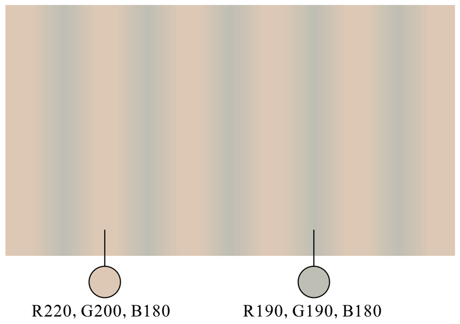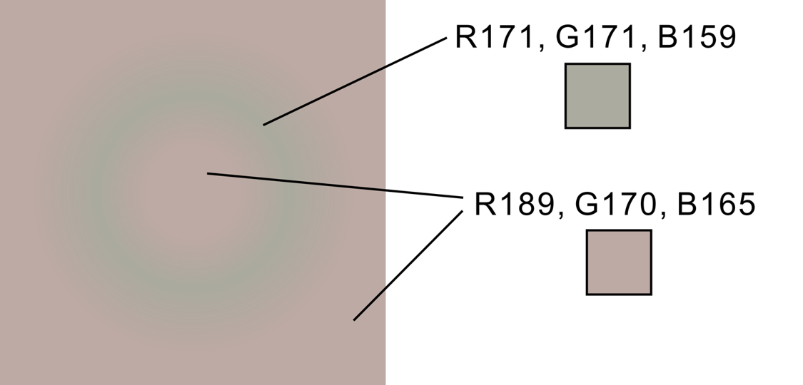本図はすべて少し赤みの入った黄色の色相の画素でできているが、青みを帯びたリングが知覚される。