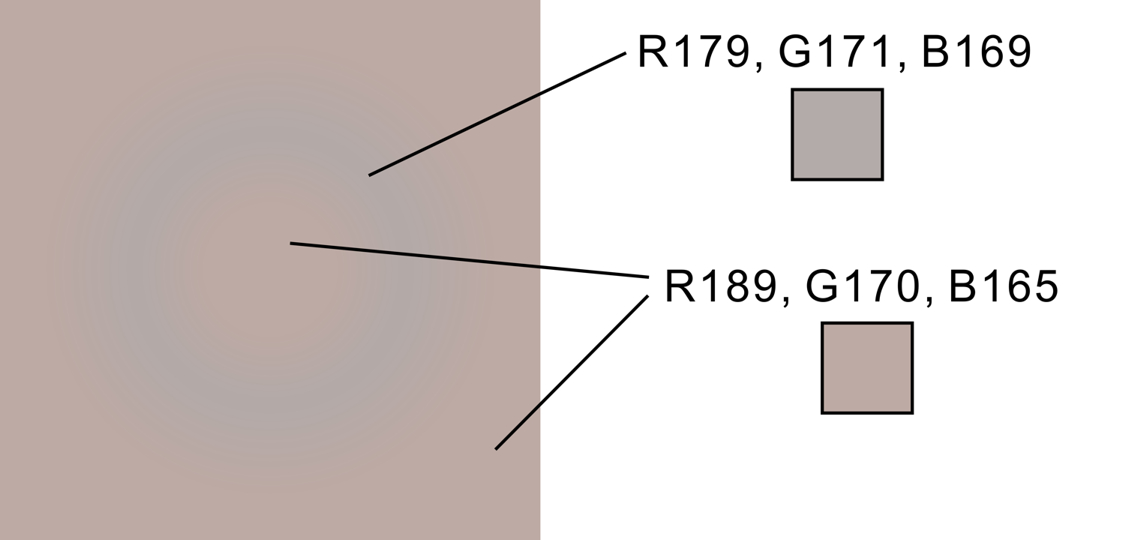 本図はすべて水色(シアン)色の色相の画素でできているが、赤みを帯びたリングが知覚される。