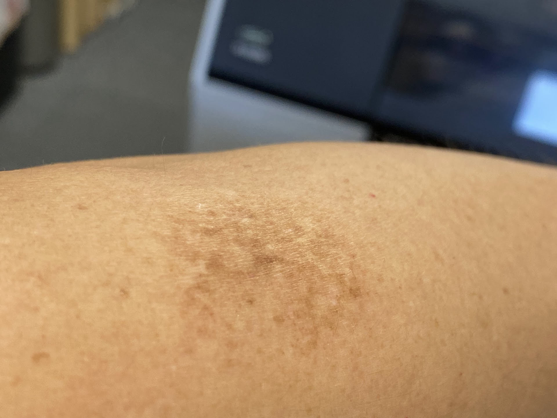 「蒙古斑の色はメラニン量が増すにつれ茶色から灰色に近くなる。青色にはならない。周囲の画像が色の見えに影響していることを示唆している。」