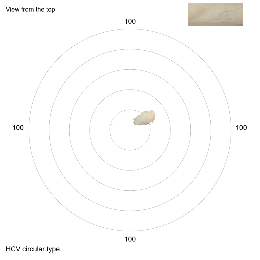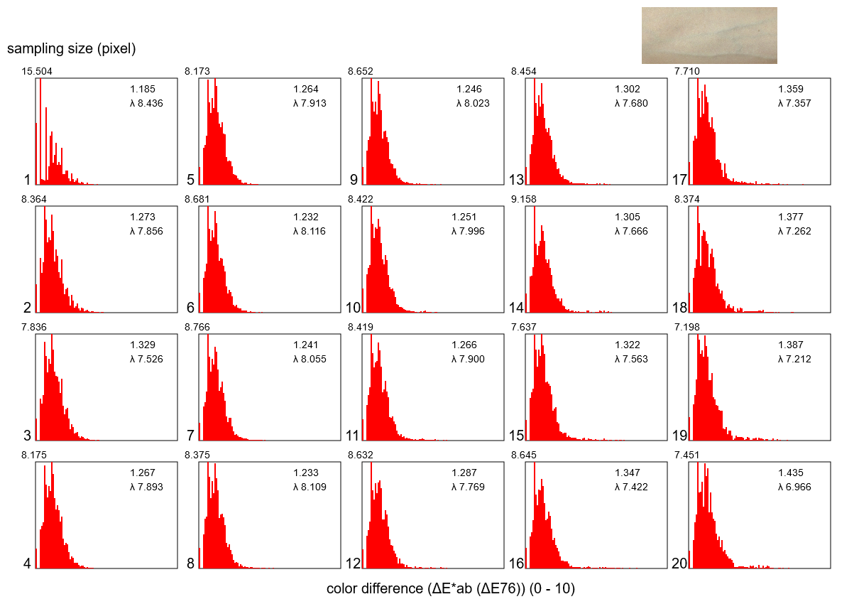 2)測色的に青色か? 観測例 ・北岡のデジカメ測色 ・蒙古斑の測定値(視感,及び,測色計による測定,未発表) さらに,以下の2つの論文により,青色でないことは確実。