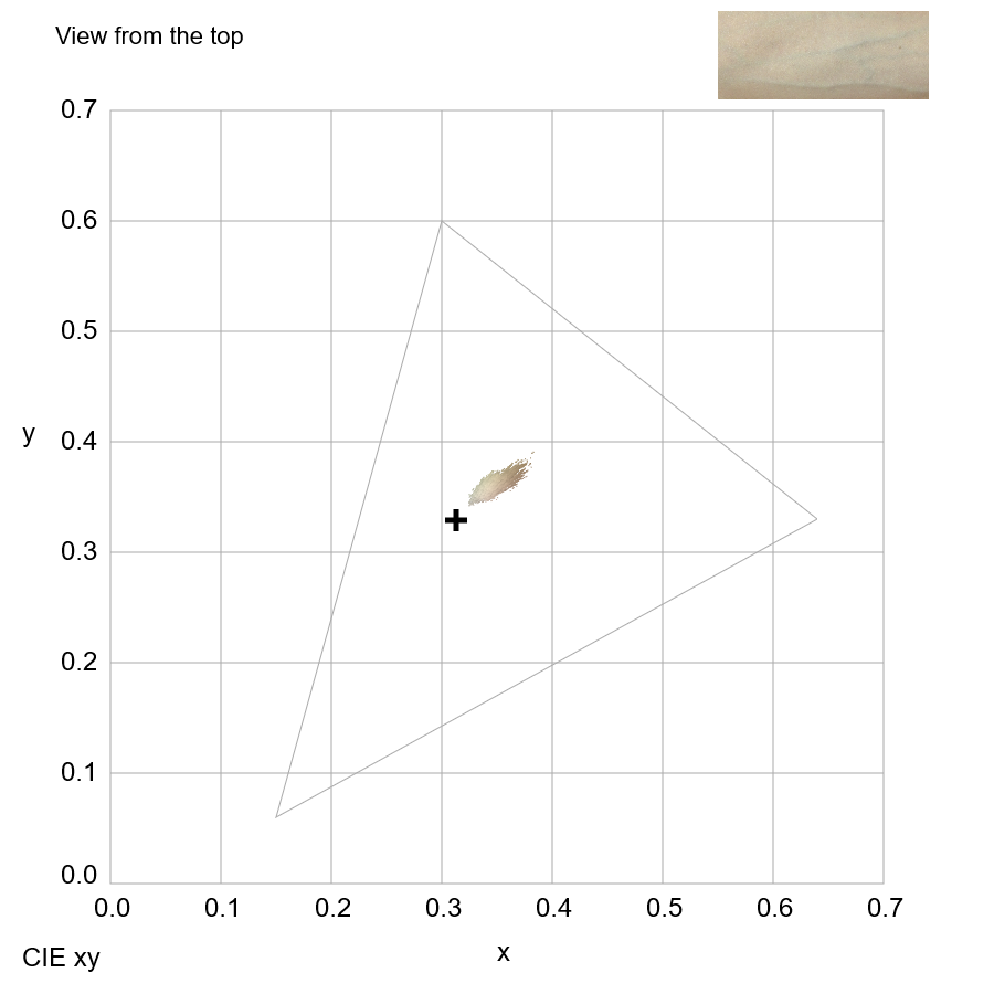 ほとんど灰色の彩度の低い黄色の領域が青みがかって見える。