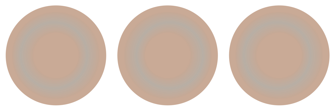 円内はすべてオレンジ色の色相で彩られているが、青いリングが知覚される。その効果は隣同士の図を融合することによる両眼立体視によって強くなる(ように思う)。