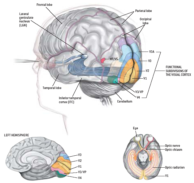 運動視を司る領域と考えられる MT+ 野 (この図ではMT/V5)