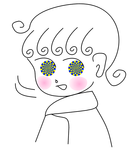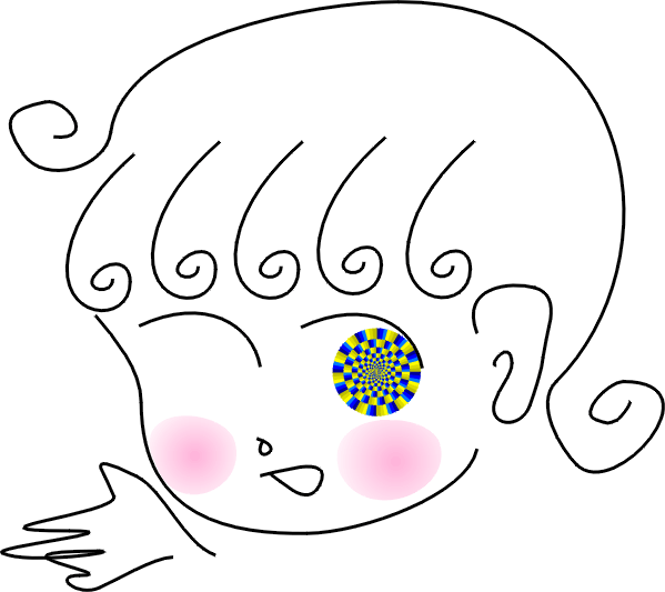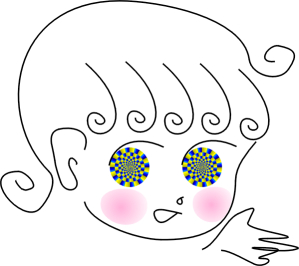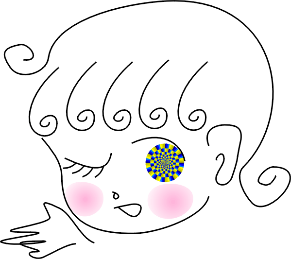 女の子が弧を描くような軌道に沿って往復運動して見える。上と右、下と左の組み合わせの場合と、上と左、下と右の組み合わせのどちらにでも見える。画像は500msずつ交替に提示している。