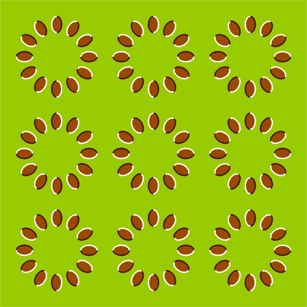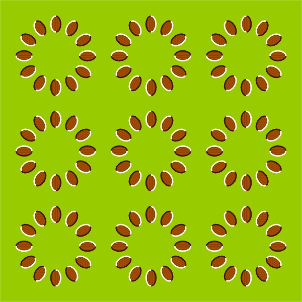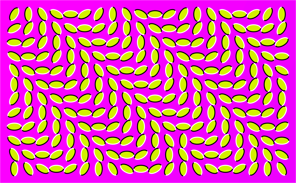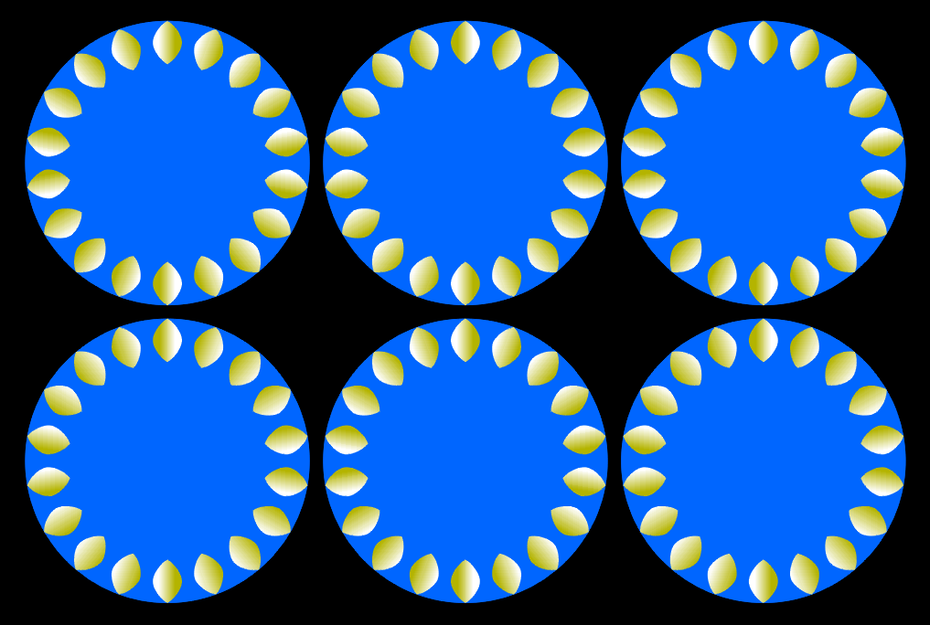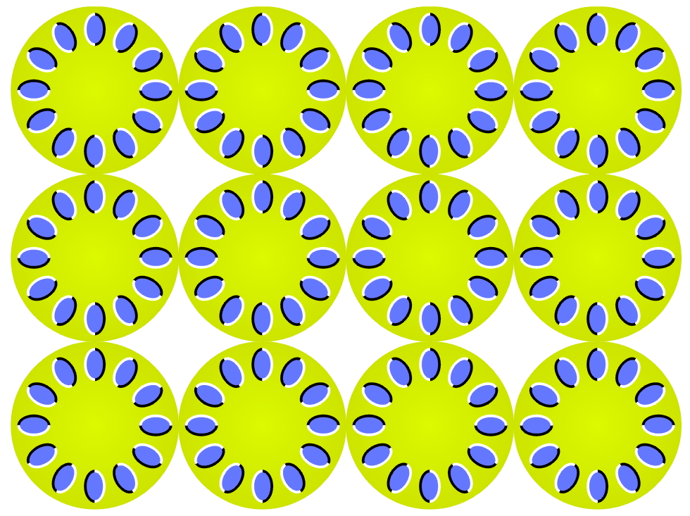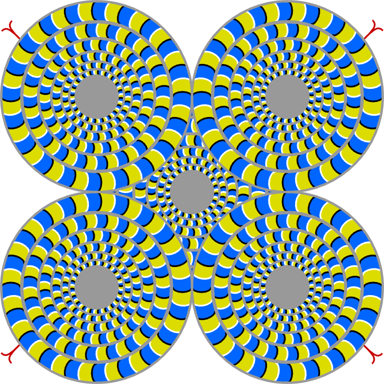 何もせずながめているだけでリングが回転して見える。一方、まばたきをするとそれとは反対方向に回転して見える。