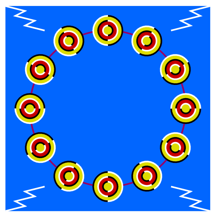 渦巻きにはレモン色のとクリーム色のと2種類あるように見えるが、どちらも同じ黄色(R255, G255, B0)である。
