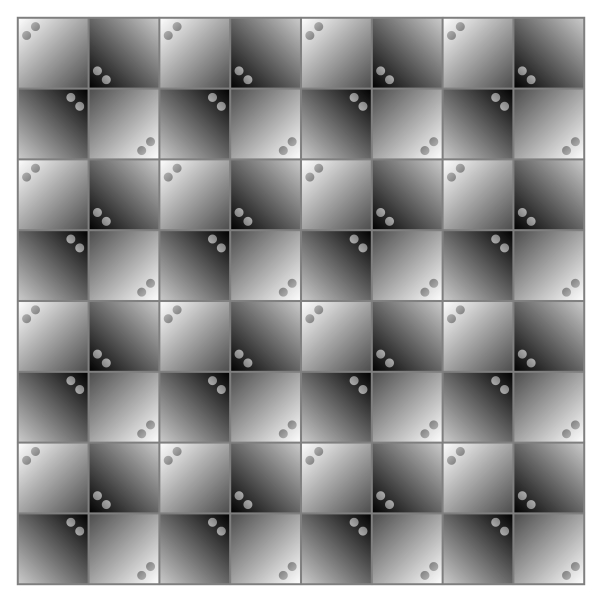 カメの集団が回転して見える。そのほか、左右に動いて見える錯視や、垂直・水平に並んだエッジが傾いて見える錯視もある。
