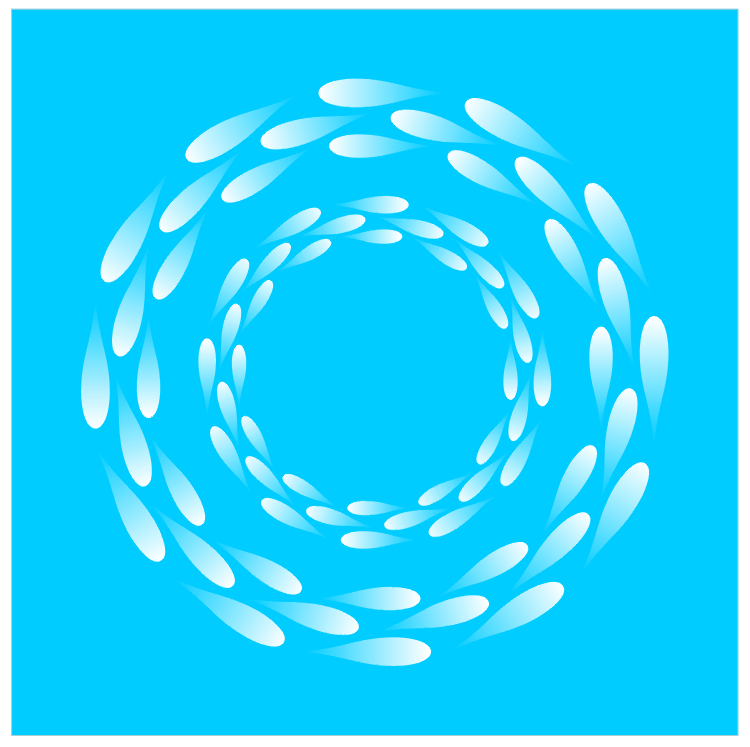 内側の魚は時計回りに、外側の魚は反時計回りに回転して見える。