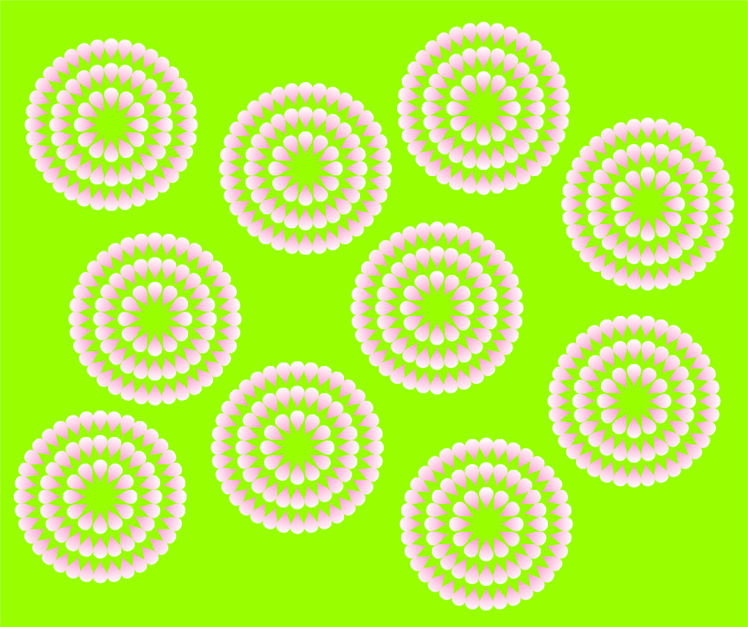 サクラの花びらのリングが回転して見える。外側は反時計回り、内側は時計回りである。