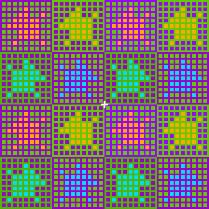 color assimilation grid illusion (Øyvind Kolås) and its afterimage (Lana Sinapayen)